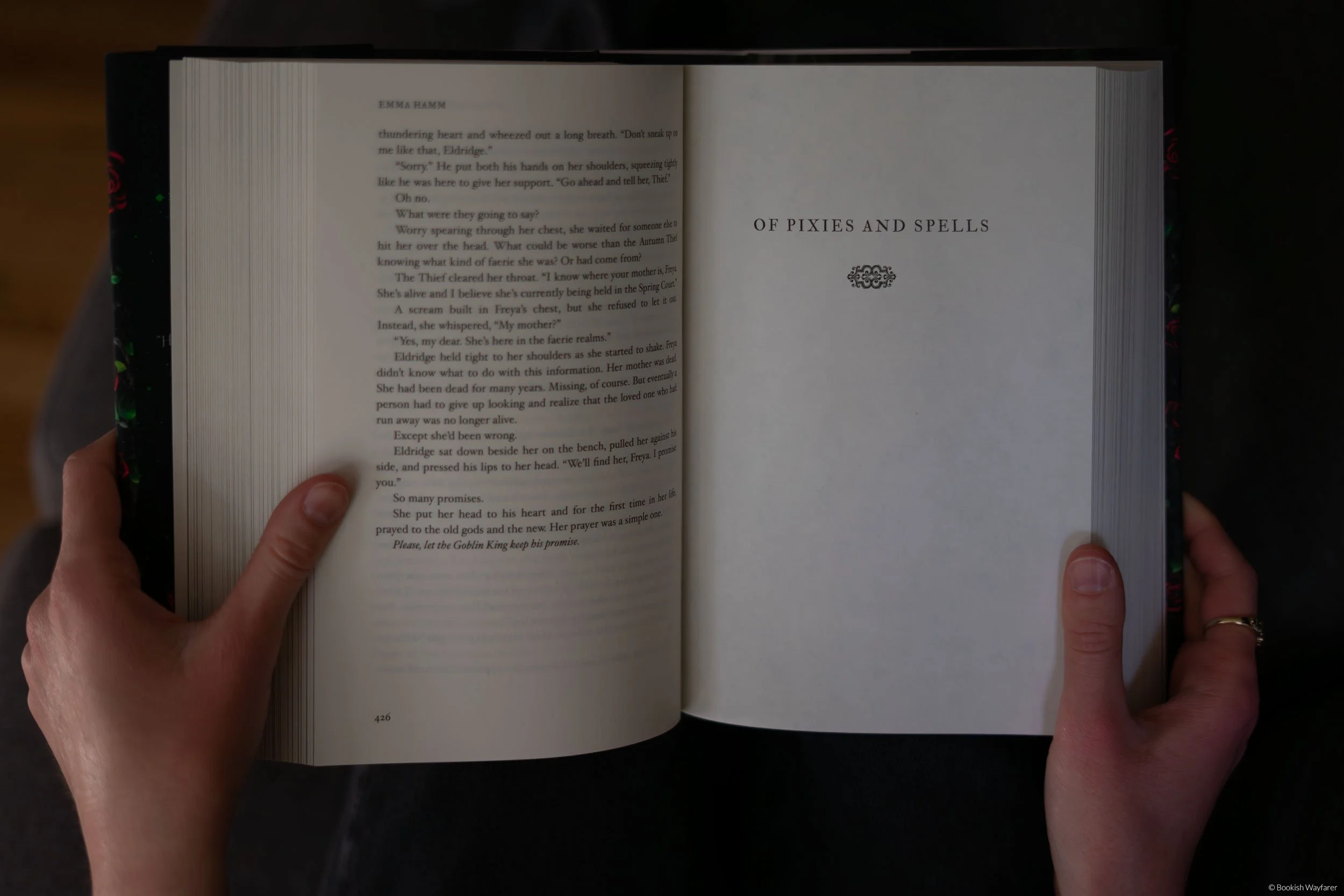 After two-and-a-half books’ worth of buildup, Freya and Eldridge finally have their first steamy encounter, but regrettably, it is as cringe as it is cliché. I am not sure what’s worse: the rose petals that Eldridge has leading up to their room or the bottle of wine and picnic that he summons. The entire thing feels like some tacky sex scene out of a B-grade movie.